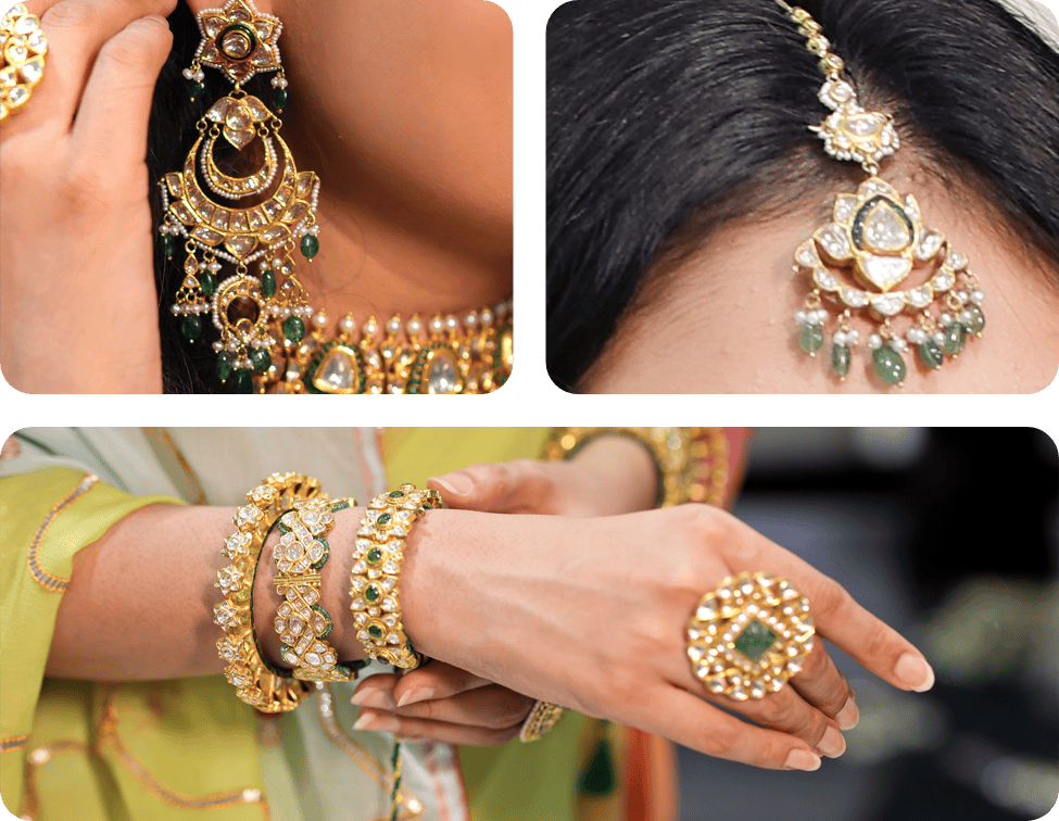 The Jadao Polki Collection at Sojatia Jewellers is a timeless blend of heritage and elegance. Crafted with authentic Polki stones, this jewellery is renowned for its intricate artistry and regal appeal. For generations, Polki has adorned the queens of Rajasthan, and today, this legacy continues in designs that resonate with modern sensibilities.